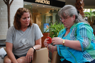 I was a little late (alright, I got waylaid at Anthropologie) so I missed the encounter with the mall police. They'd never heard of World-Wide Knit in Public Day and were quite suspicious at first. We almost got shut down by the fuzz (mall cops on Segways, no less)! But after a little explanation, all was well.